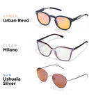 - 1 par con lentes transparentes para la oficina o la escuela, que combinan protección y discreción.
