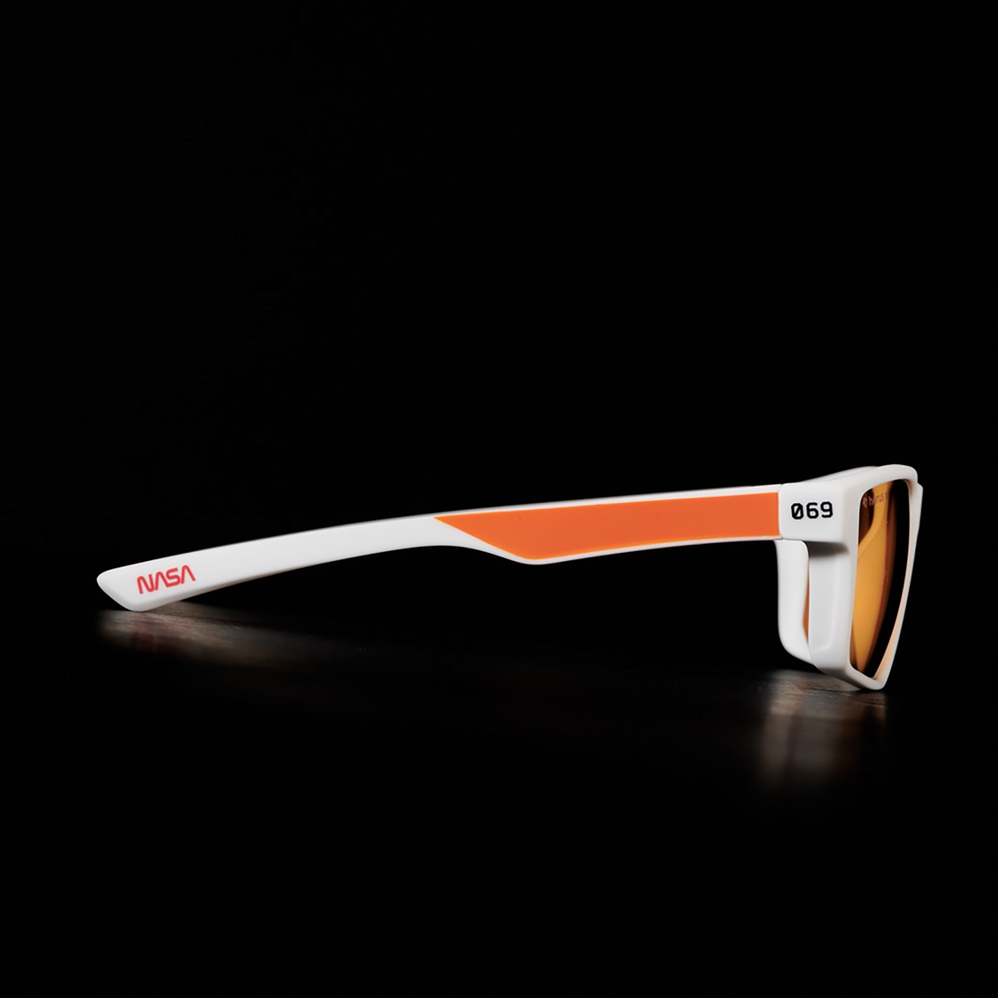 - Logotipo de la NASA en la parte posterior de la patilla, como homenaje a la exploración espacial.