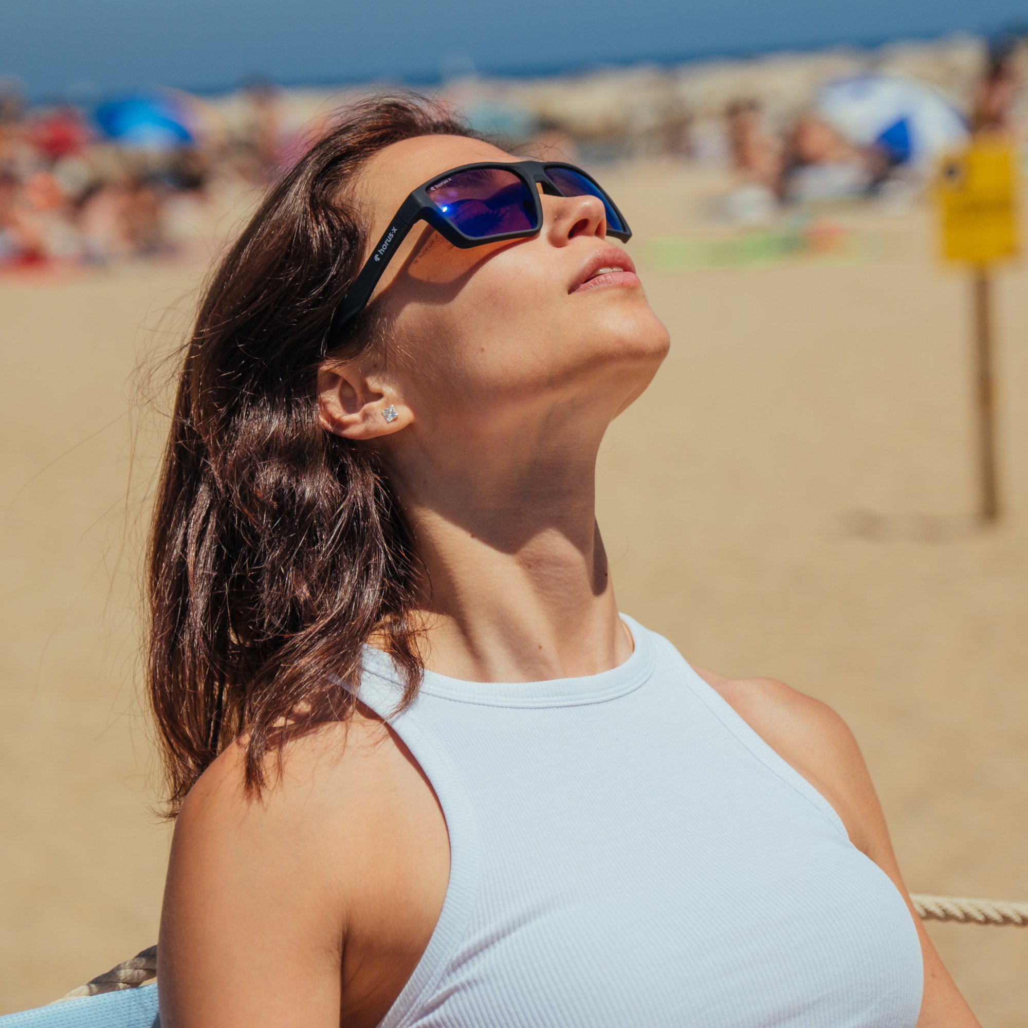 Un filtro excelente que elimina el 100 % de los rayos UV (A, B, C) y además te permite utilizar cómodamente pantallas en exteriores. Estas gafas van un paso más allá de las gafas tradicionales, ya que filtran el espectro dañino de la luz azul. Si, como nosotros, trabajas desde tu tumbona en la arena a orillas del mar, nuestras gafas te ayudarán a mantener la productividad en cualquier situación.