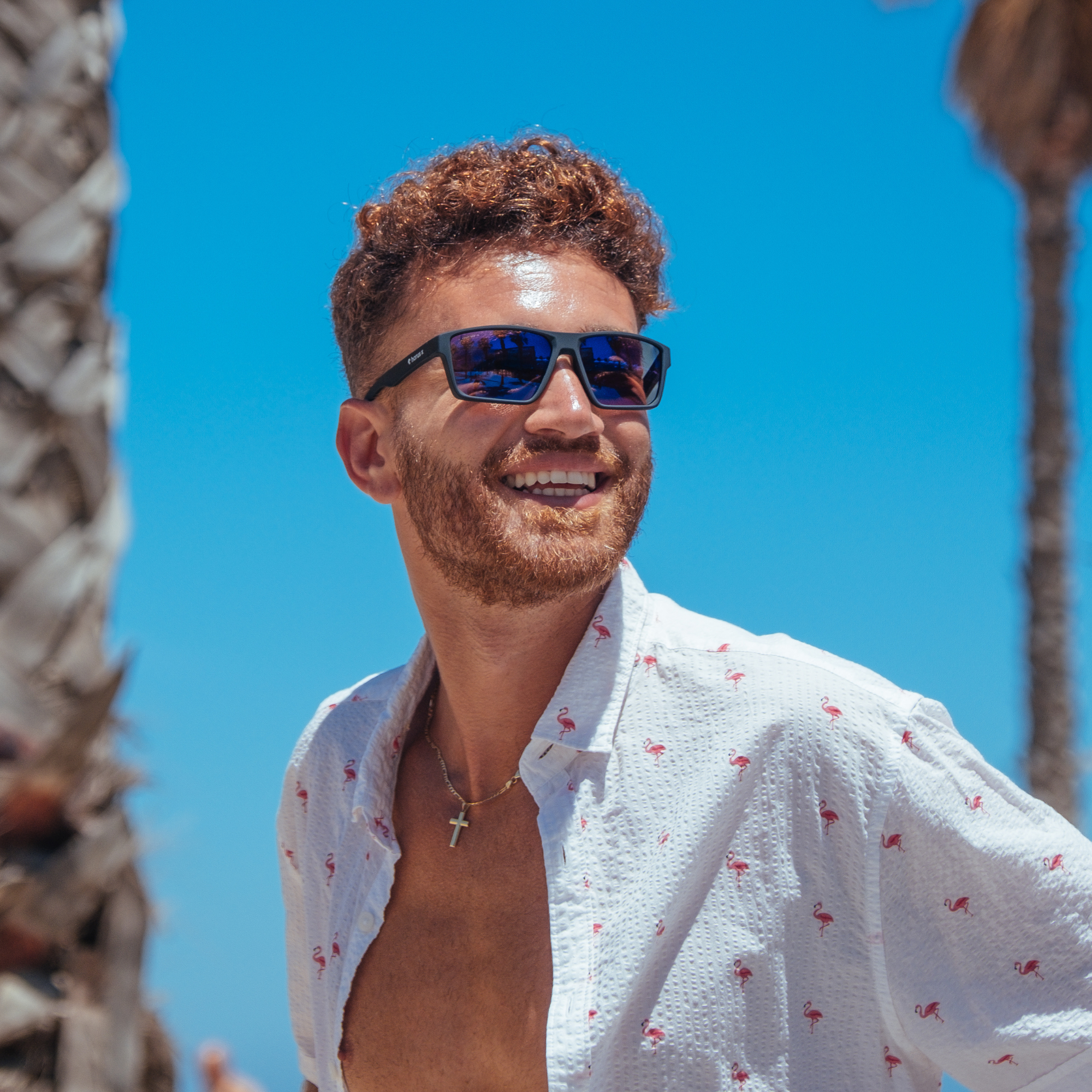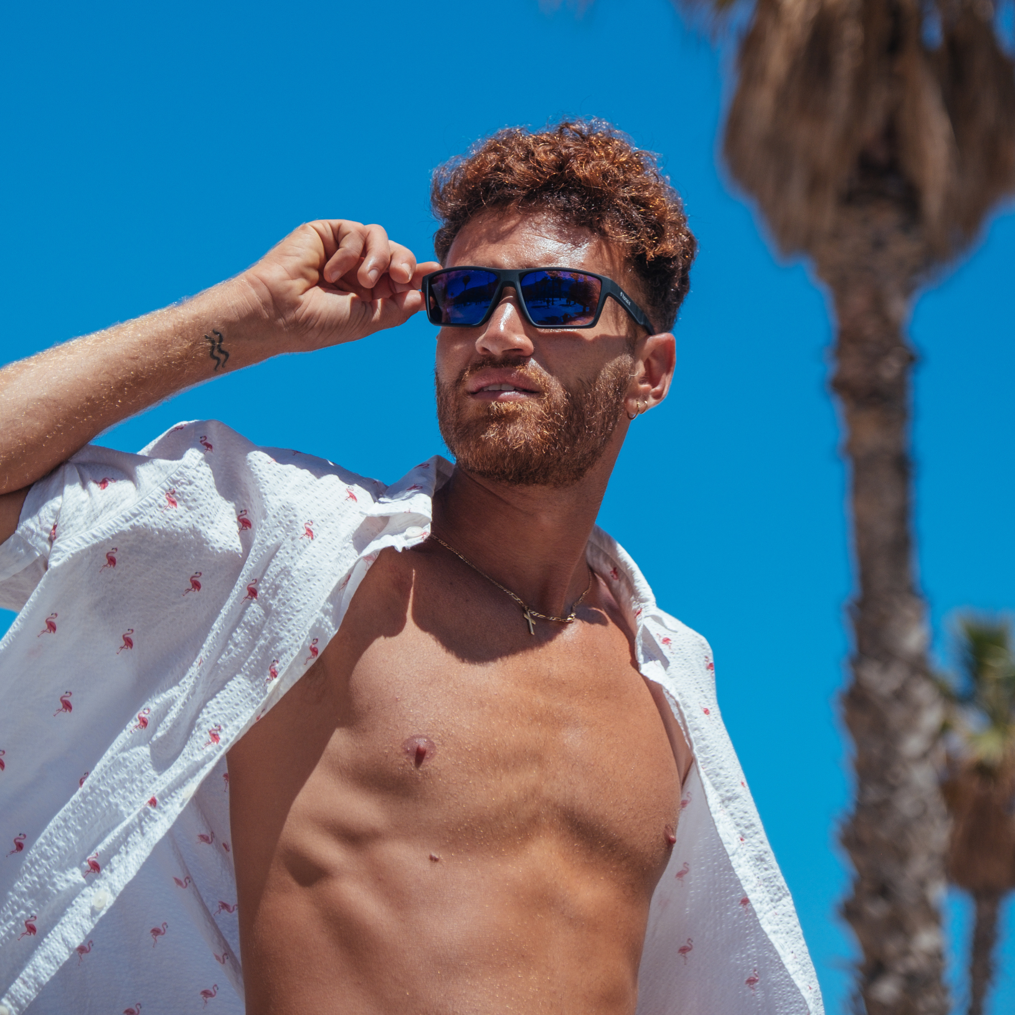 Unas gafas de sol de cobertura total que rezuman la libertad de los espacios abiertos. Nuestra montura insignia brinda sencillez y un campo de visión panorámico para un uso polivalente en exteriores. Estarás tan guapo como nadie con nuestros exclusivas lentes de sol equipadas con reflejos azulados. Tendrás aún más carácter que el chihuahua que todos intentamos acariciar alguna vez.