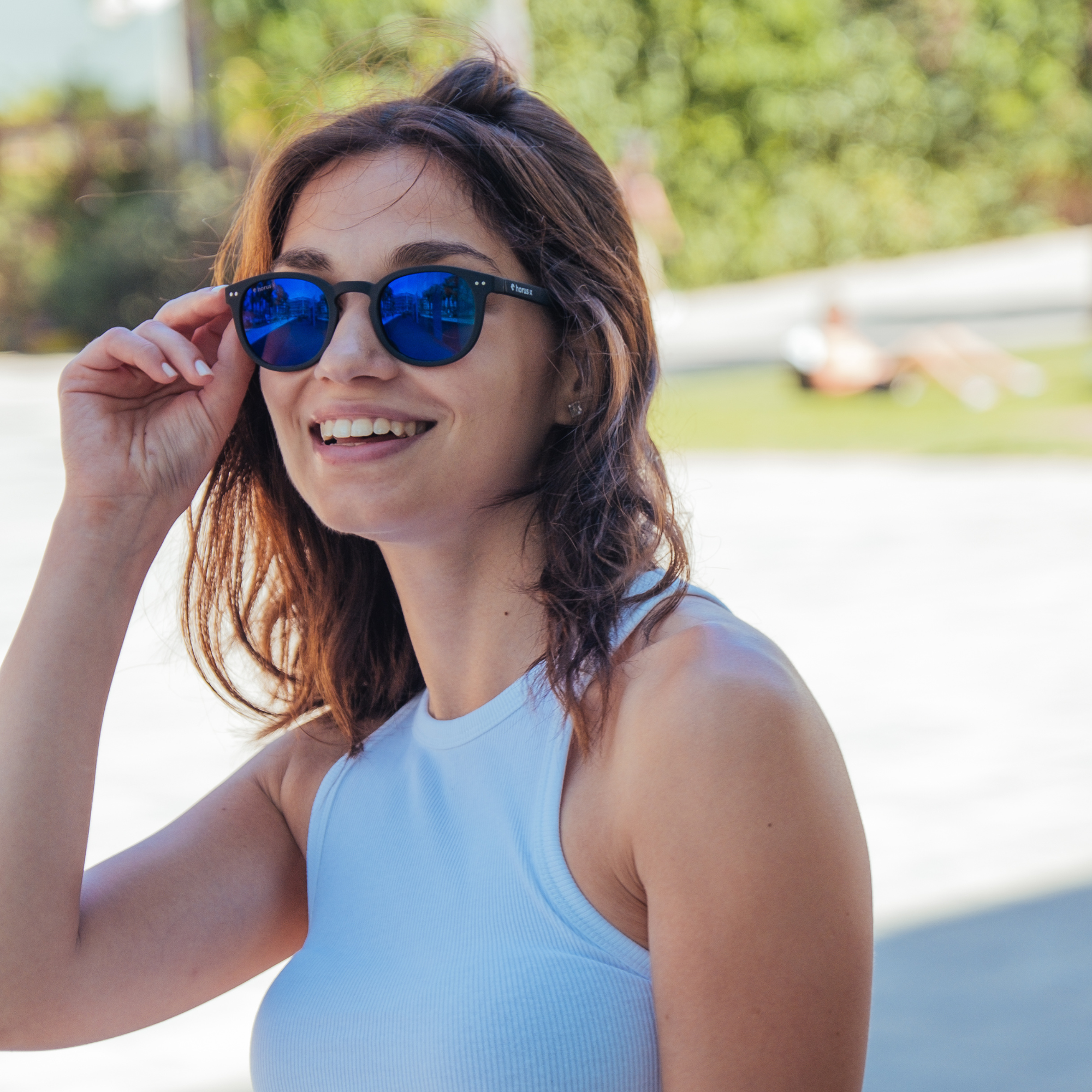 Sencillez, eficacia y un toque de originalidad. Una montura emblemática. Las lentes de sol exclusivas con reflejos azulados le dan aún más carácter a este modelo que complementará con maestría tus looks de verano más bonitos.
