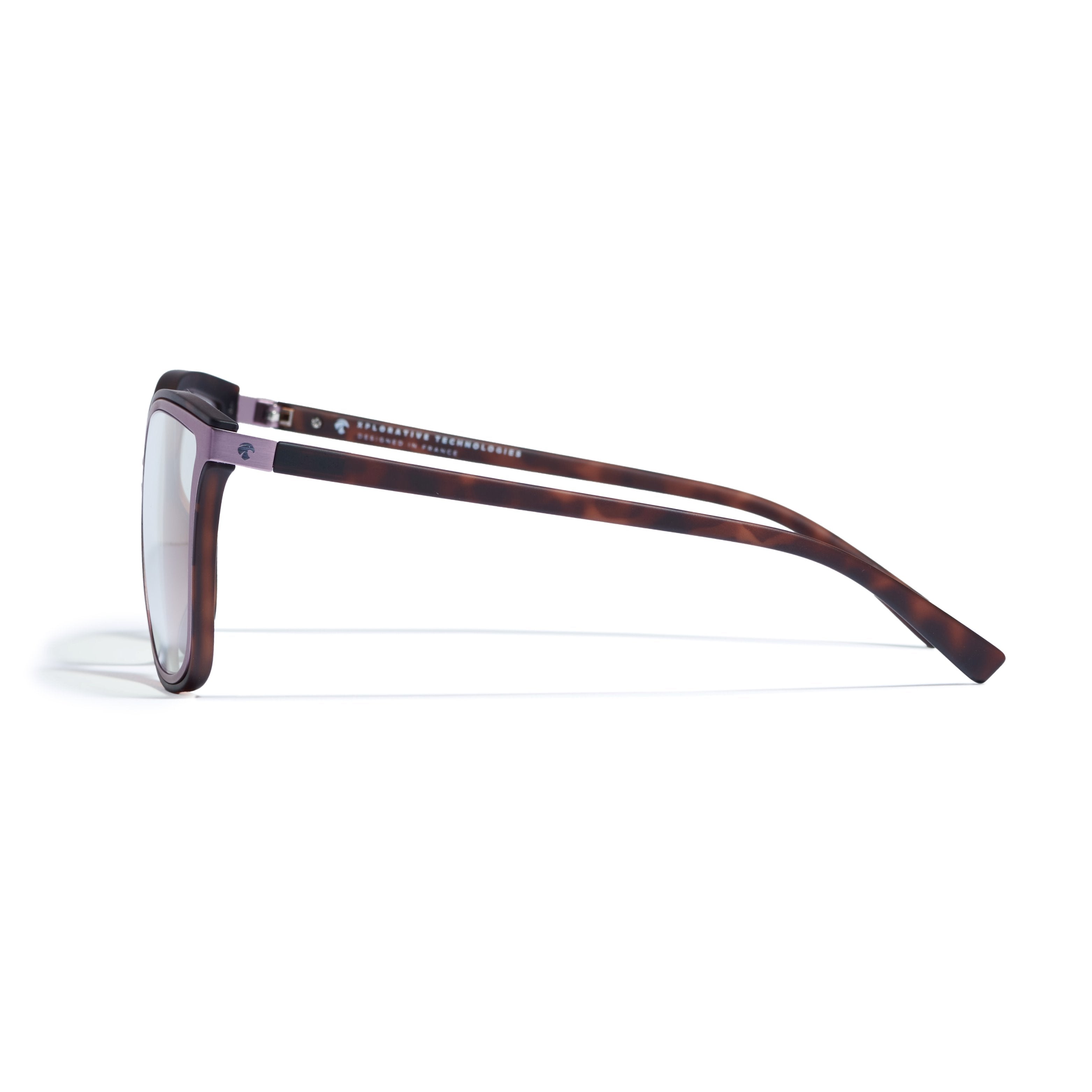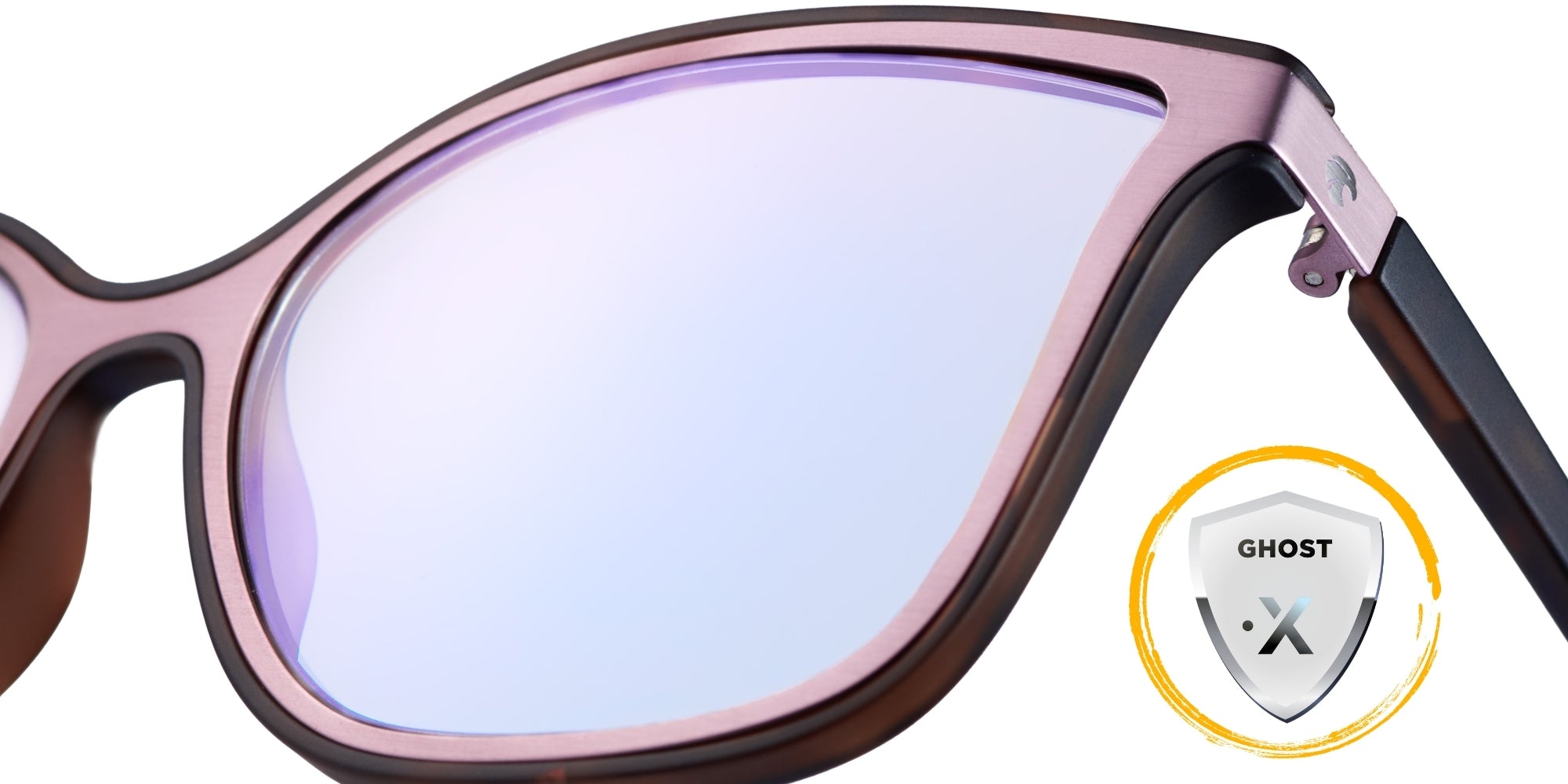 Esta montura para mujer revisita el encanto atemporal de las gafas de mariposa con un toque moderno. La innovadora fusión de policarbonato y metal cepillado crea un diseño único, al tiempo que conserva el amplio campo de visión de este modelo icónico. La tecnología patentada Ghost® filtra eficazmente la luz azul para un confort visual óptimo.