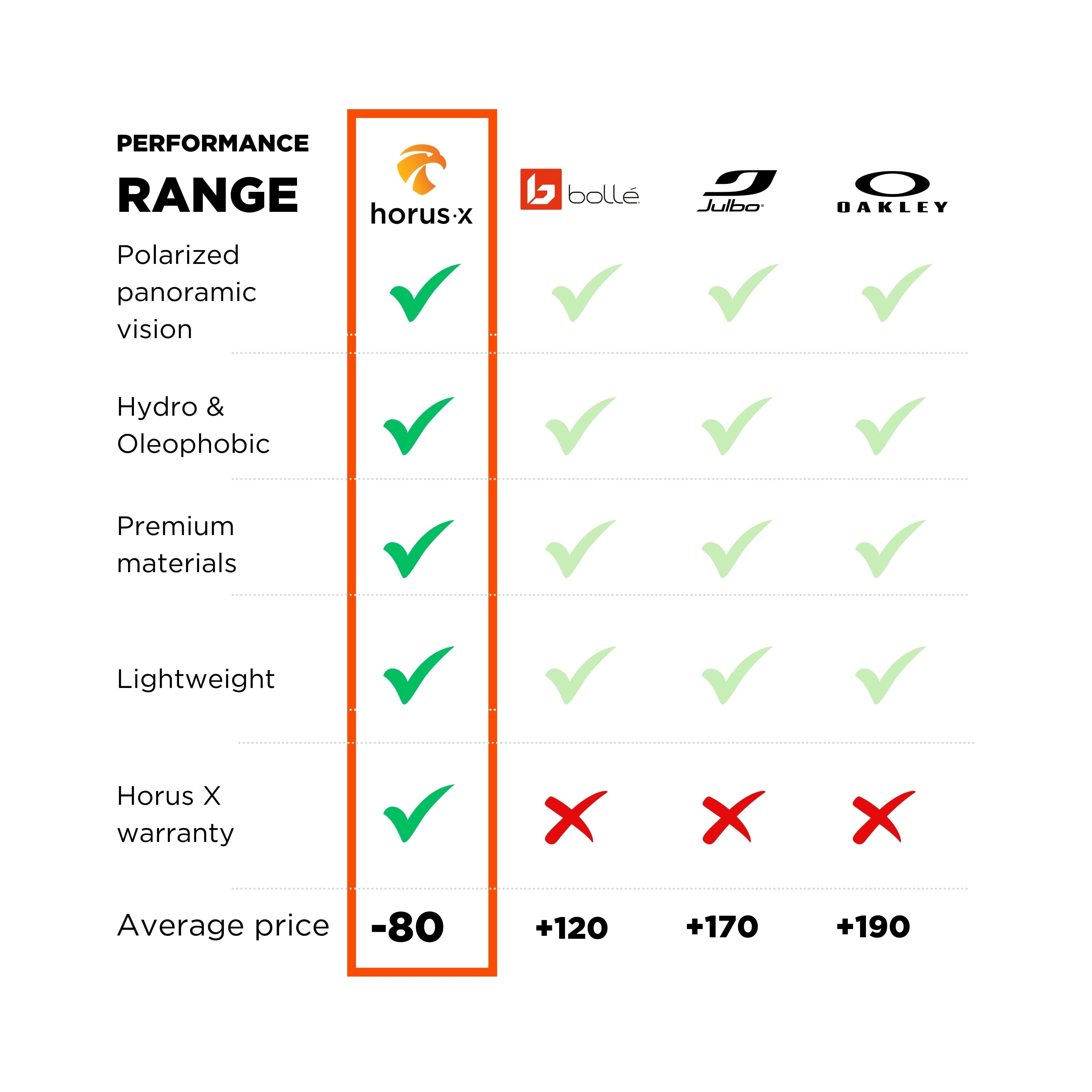 Lo mejor de las tecnologías de alto nivel (running, ciclismo, trail running, esquí), realzado por la tecnología Horus X. Perfectas para maximizar tu rendimiento al aire libre, ofrecen una protección solar óptima a la vez que un confort y una claridad visual excepcionales gracias a sus lentes polarizadas y su revestimiento antivaho, hidrófobo y oleófobo.