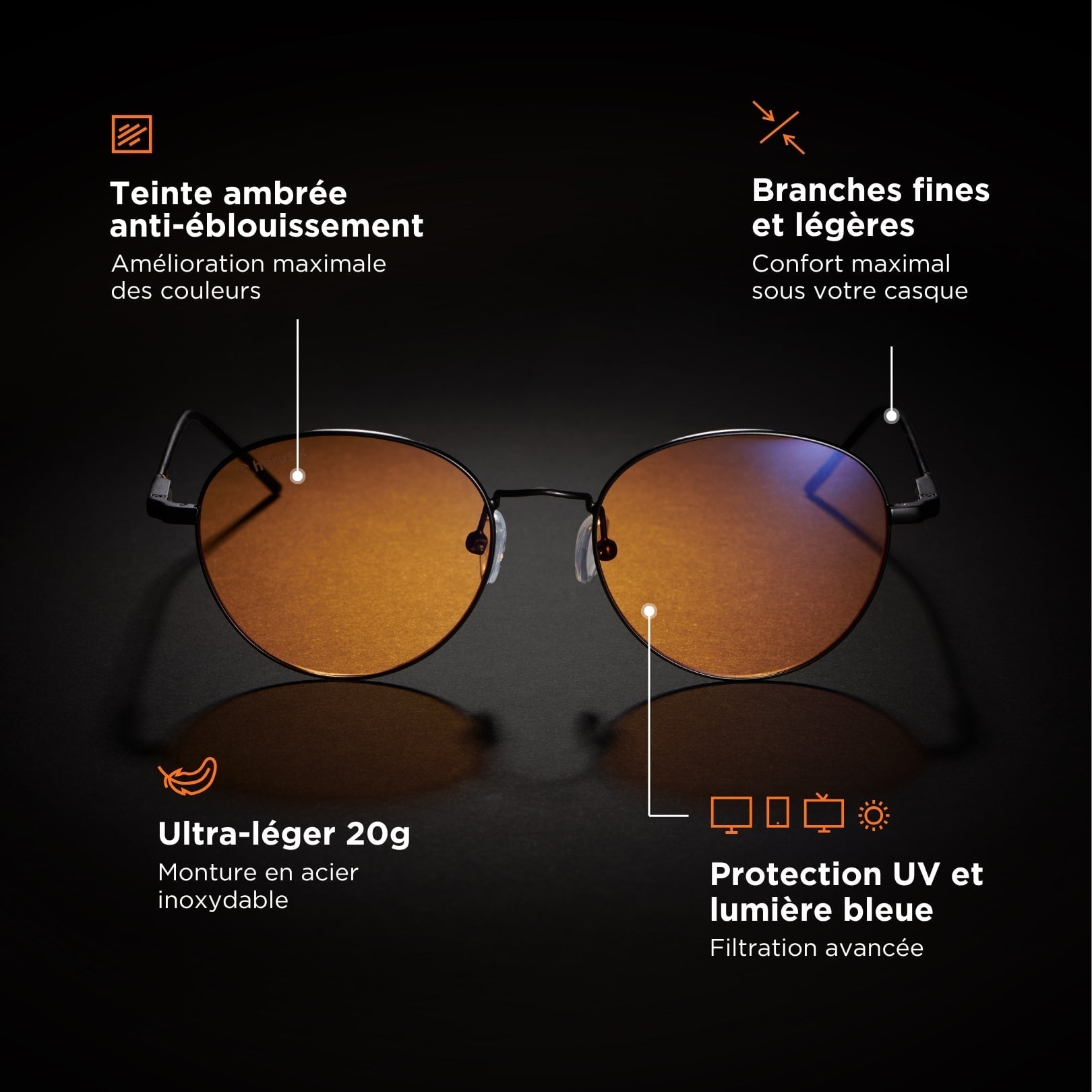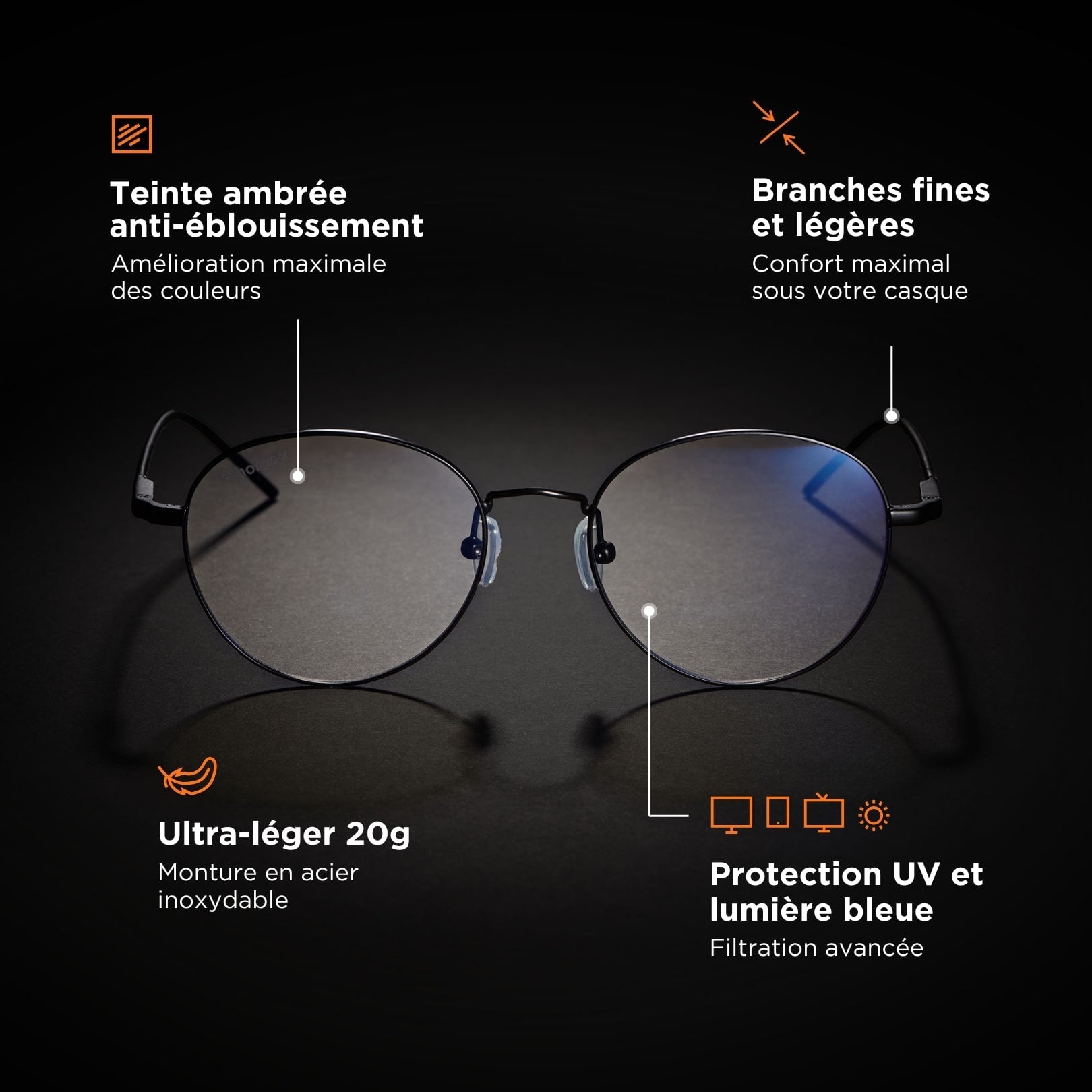 Gafas con filtro de luz azul resistentes y duraderas en aleación metálica Horus X.