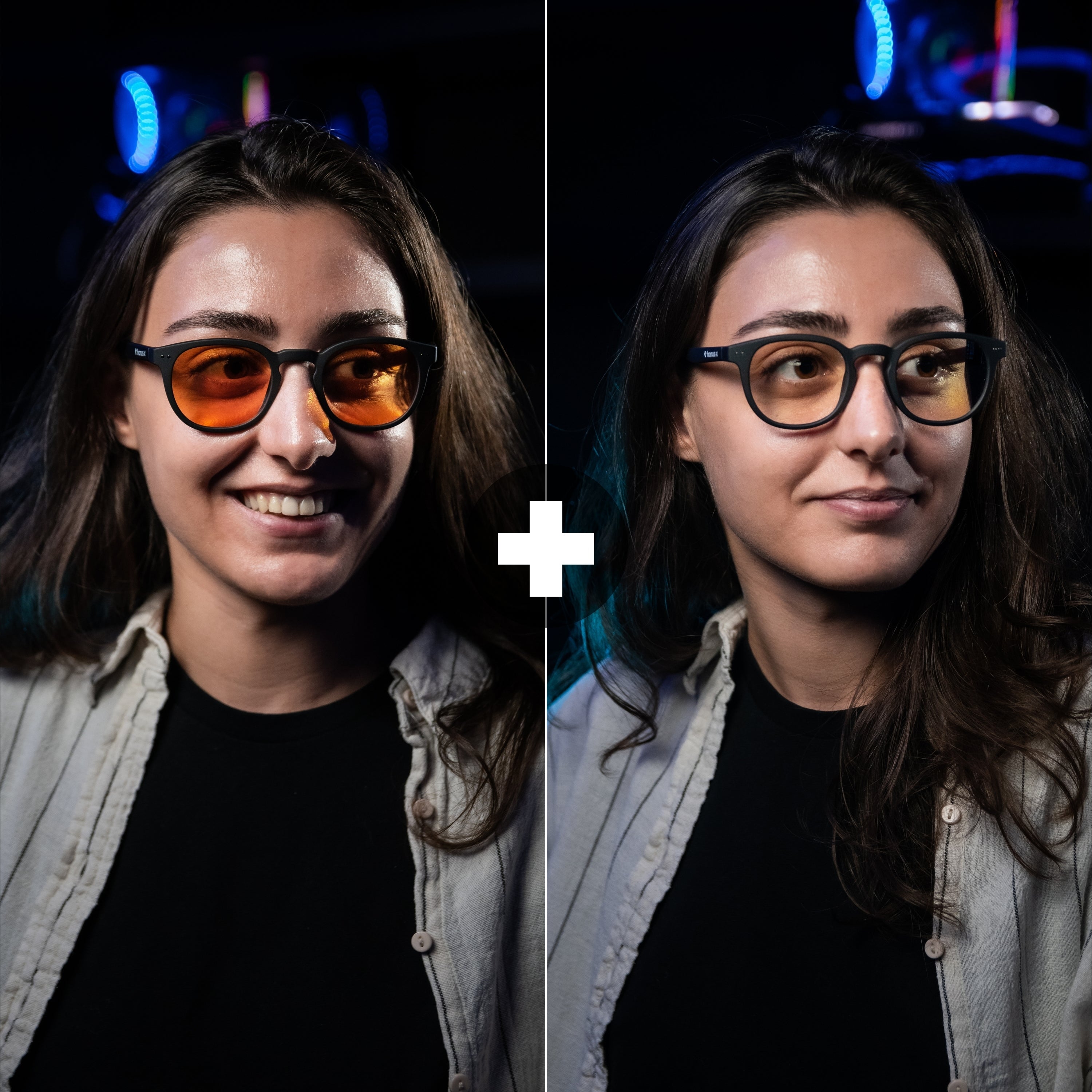 La exposición prolongada a las pantallas puede alterar el sueño o generar fatiga visual. No pierdas rendimiento gracias a estas gafas de gaming anti luz azul con curvas redondeadas, diseñadas especialmente para videojuegos. Equipadas con el mejor filtro de pantalla del mercado (anti UV, anti luz azul, antirreflejo, anti mal gusto).