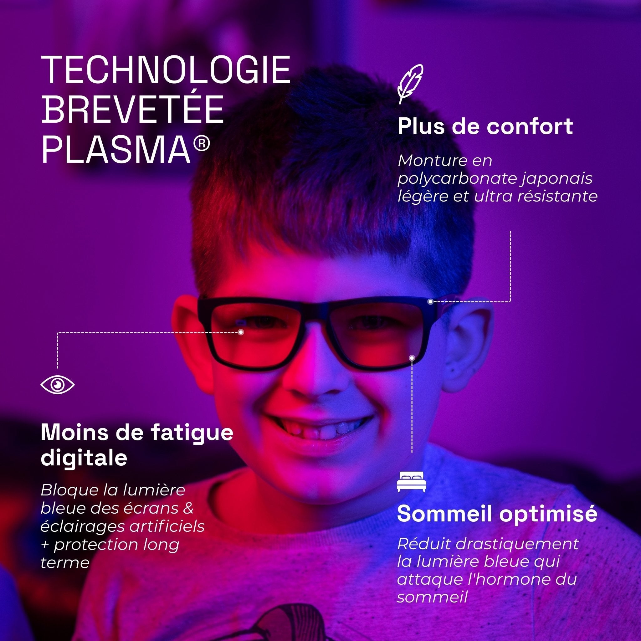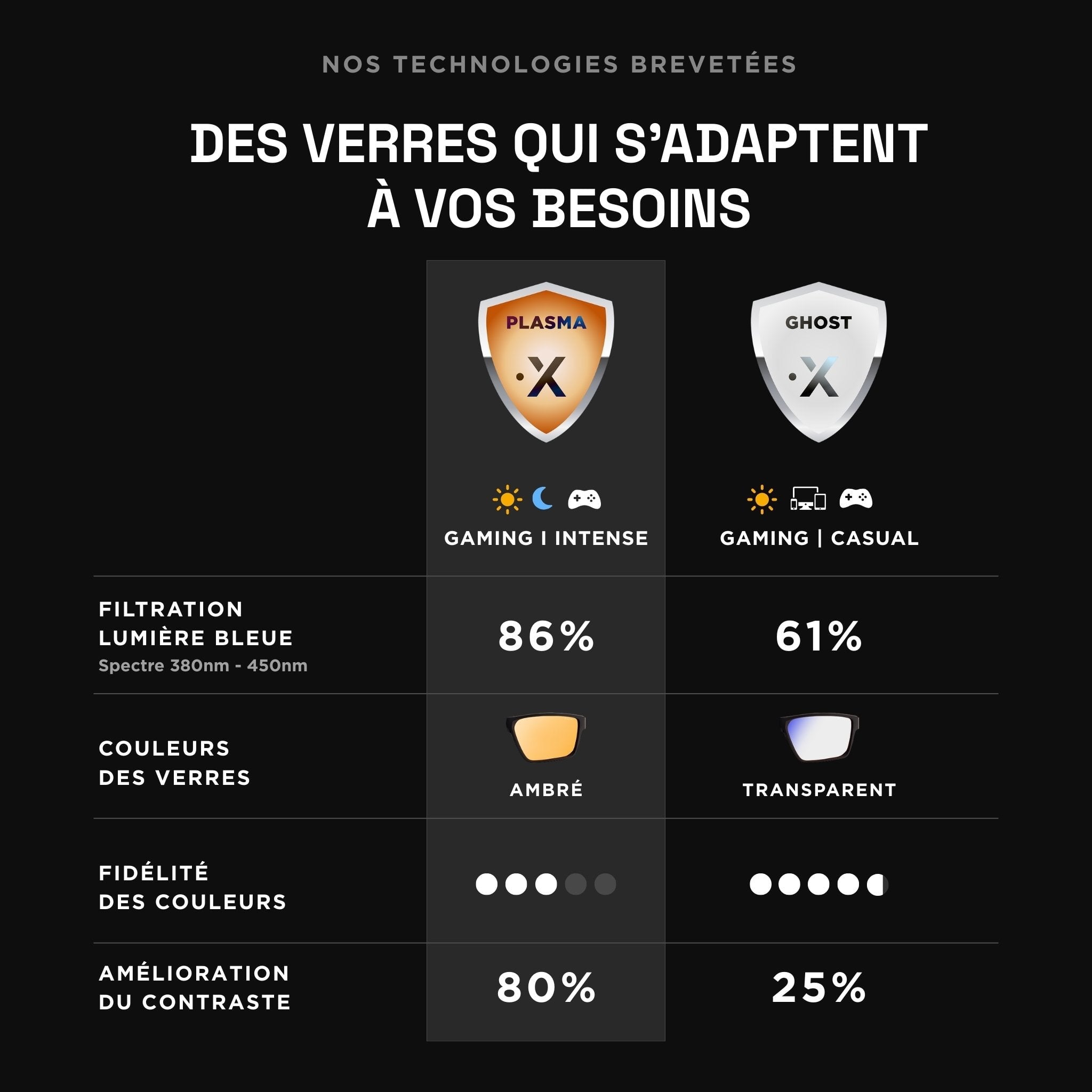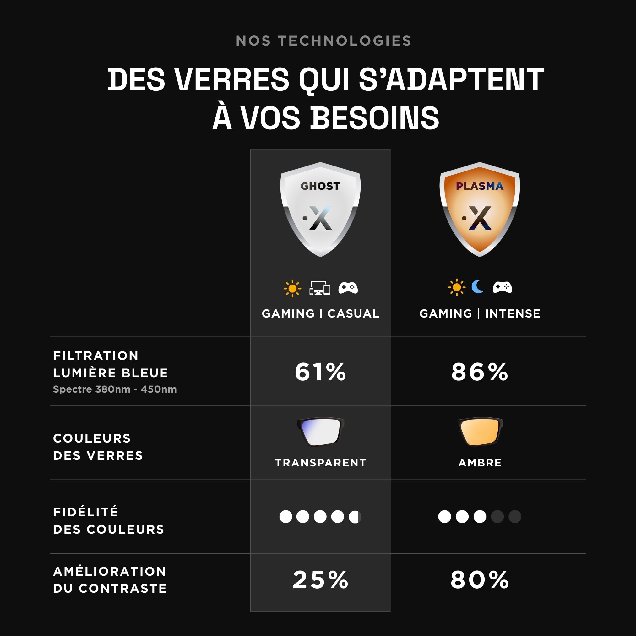 Gafas para gaming infantiles perfectamente adaptadas a la generación joven. Diseñadas para rostros delgados y equipadas con nuestras tecnologías registradas Ghost y Plasma. Las gafas de gaming definitivas para los más jóvenes. ¡Protección de los ojos más sensibles a largo plazo!