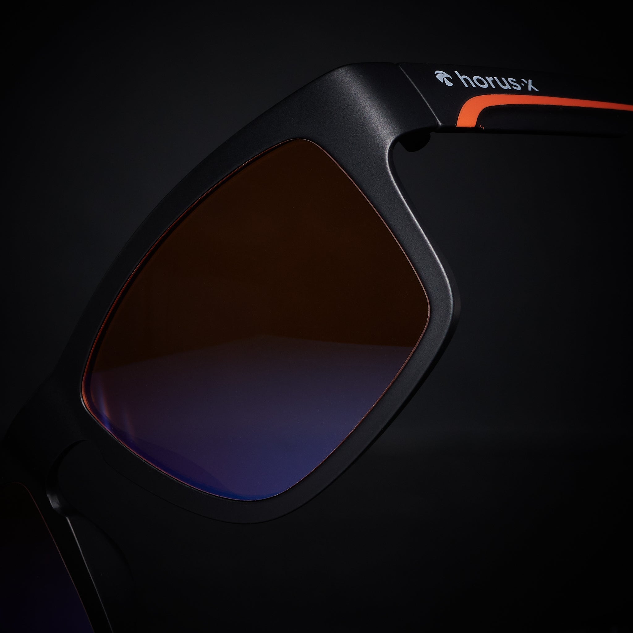Hemos trabajado muy duro para equipar nuestras gafas gaming Horus X con los mejores materiales. Patillas y lentes de policarbonato, materiales ultraligeros (¡20 g!), suaves e hipoalergénicos. Comodidad inigualable para las sesiones de gaming, optimizadas para usarlas con auriculares de tipo casco.