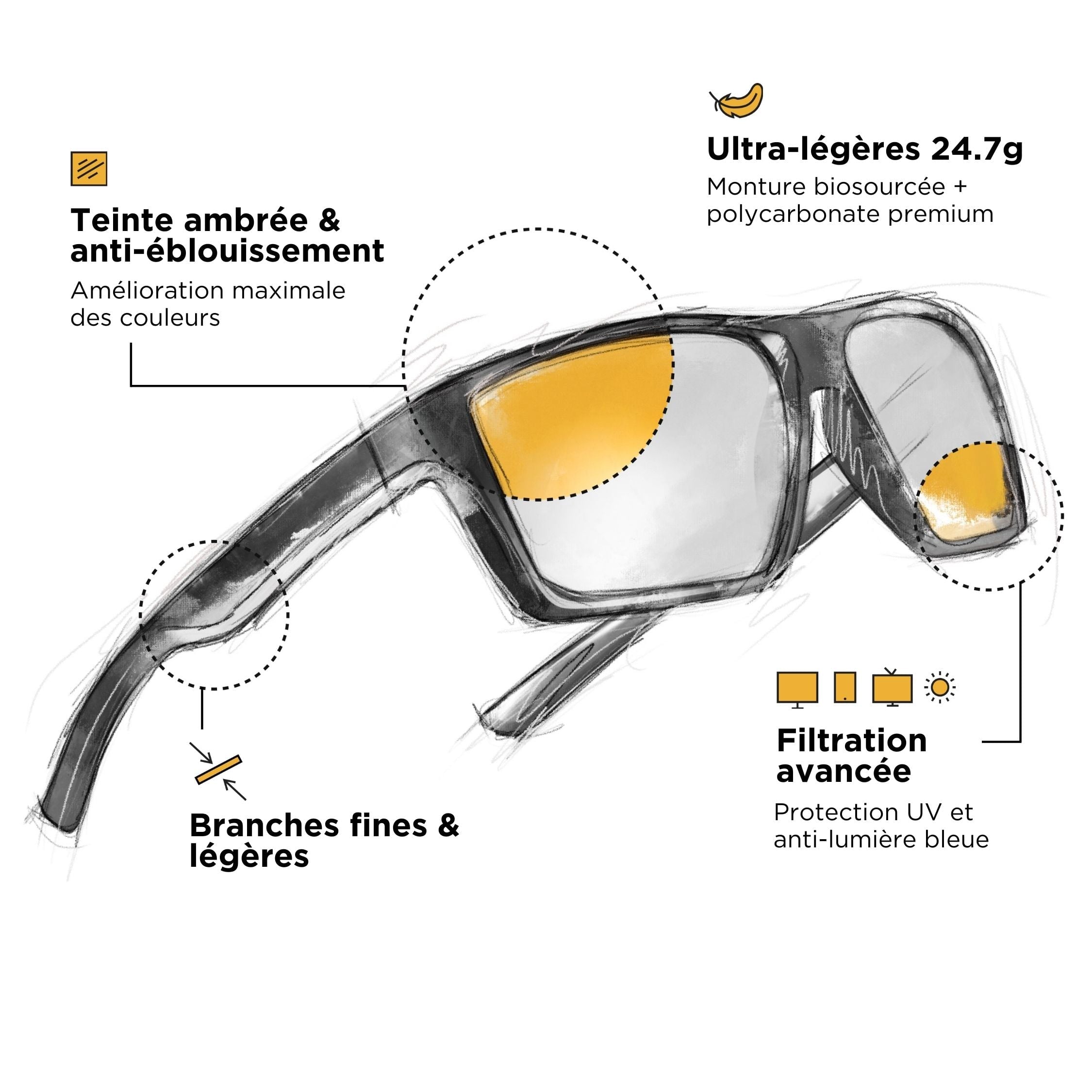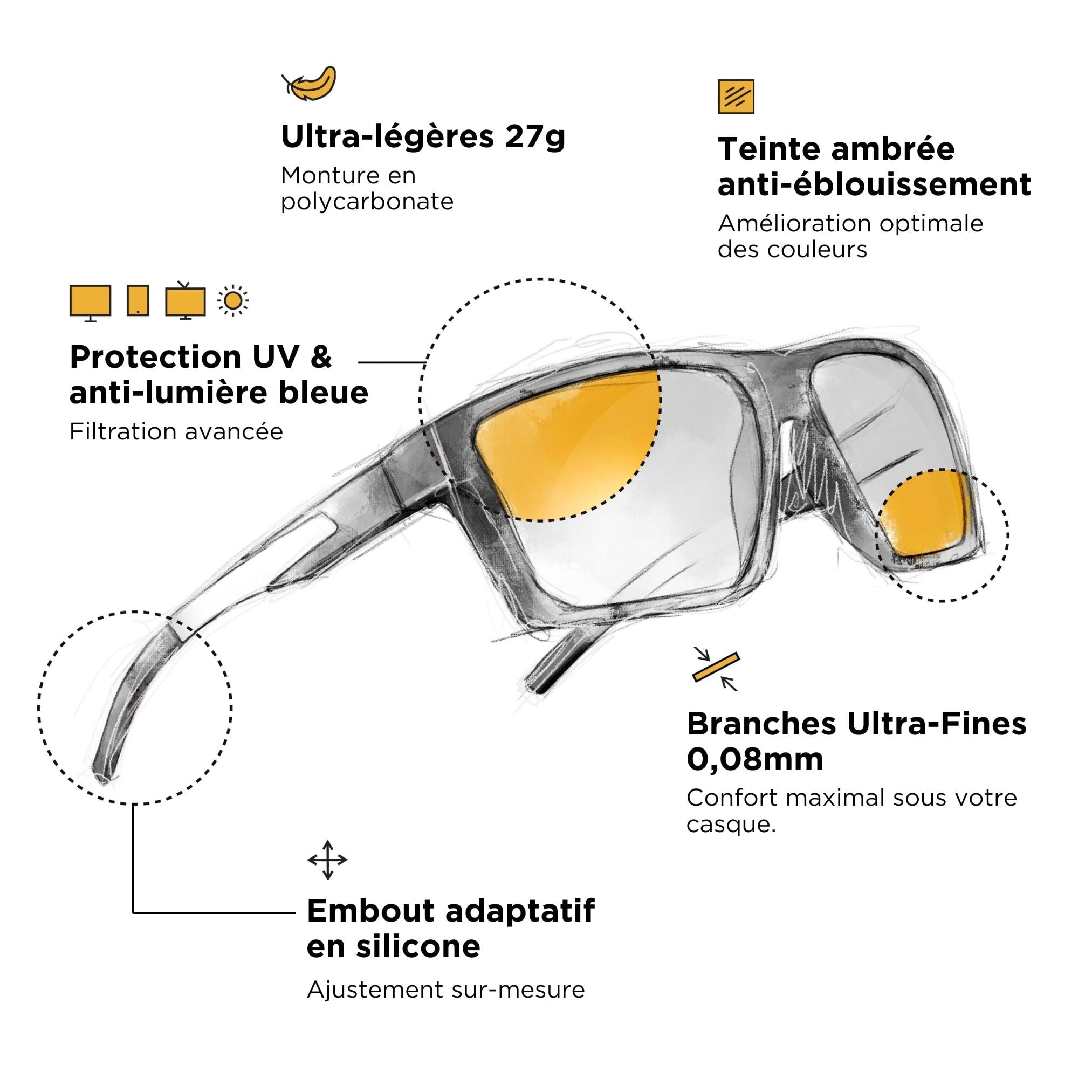 Bundle = 1 par con lentes transparentes + 1 par con lentes ámbar.