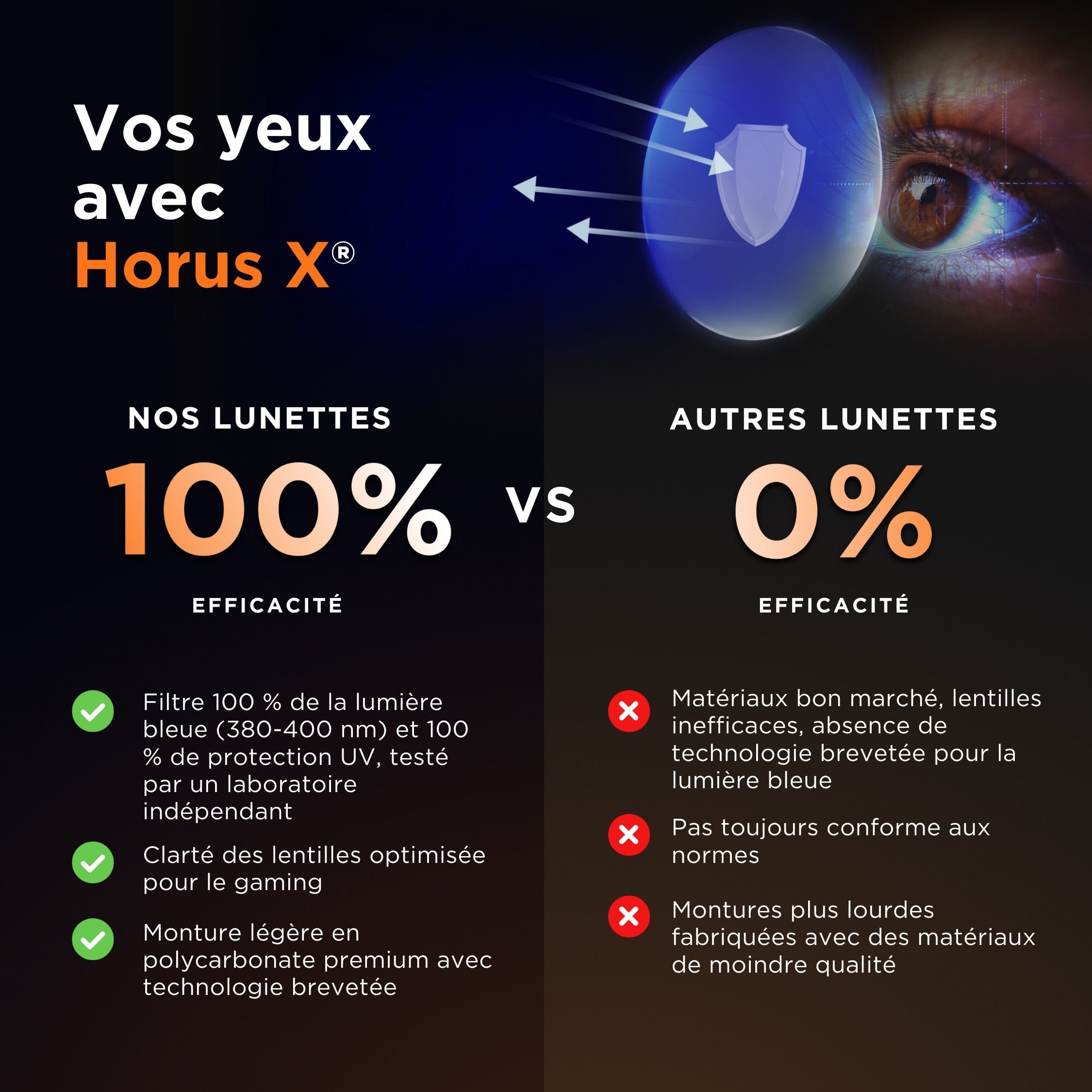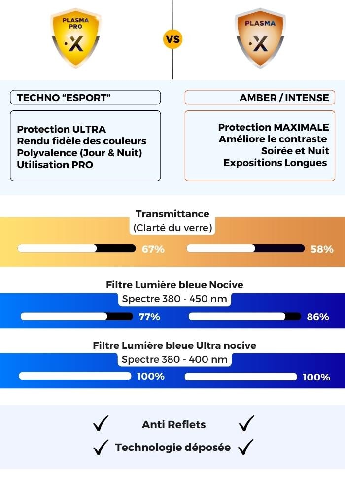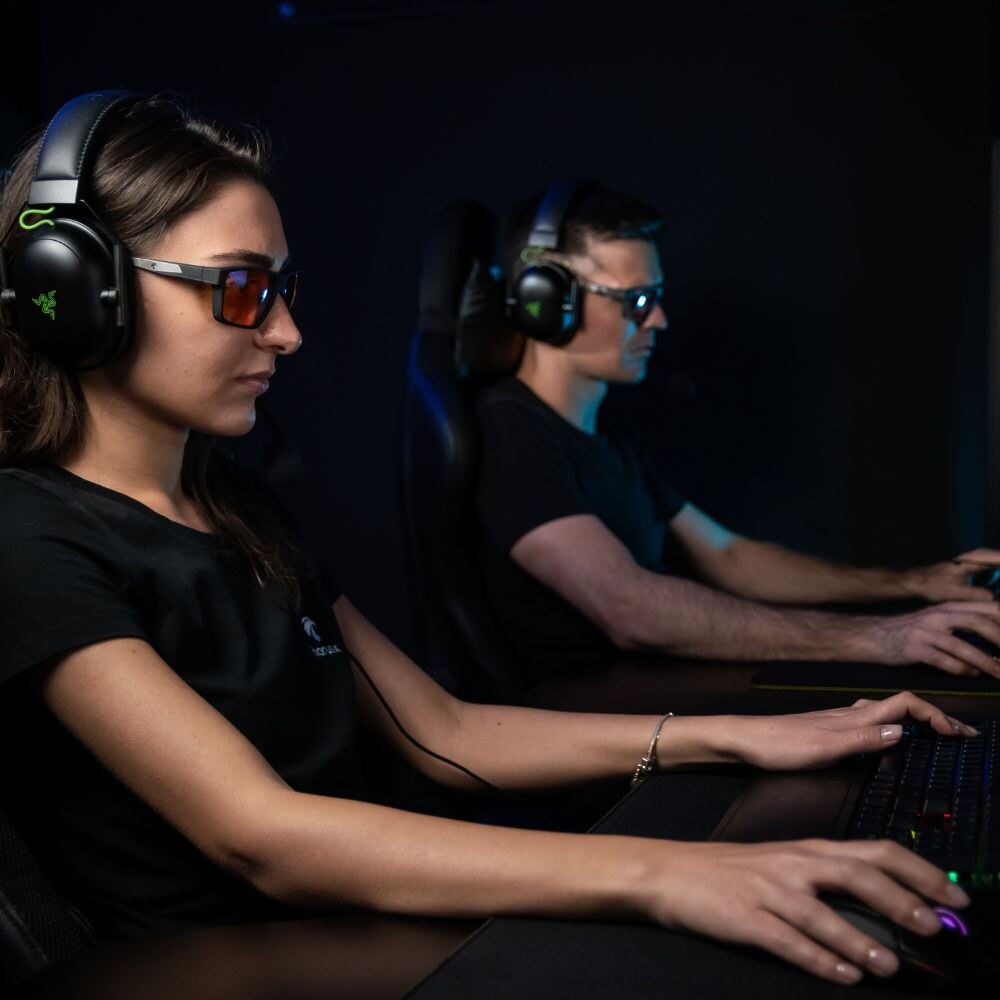 Mantén un alto rendimiento con estas gafas anti luz azul diseñadas especialmente para gamers. Filtro de protección 100 % anti luz azul a 400 nm y más del 50 % u 86 % entre 380 y 450 nm (según el modelo). Las gafas definitivas para proteger a los gamers, ya seas un jugador asiduo u ocasional.